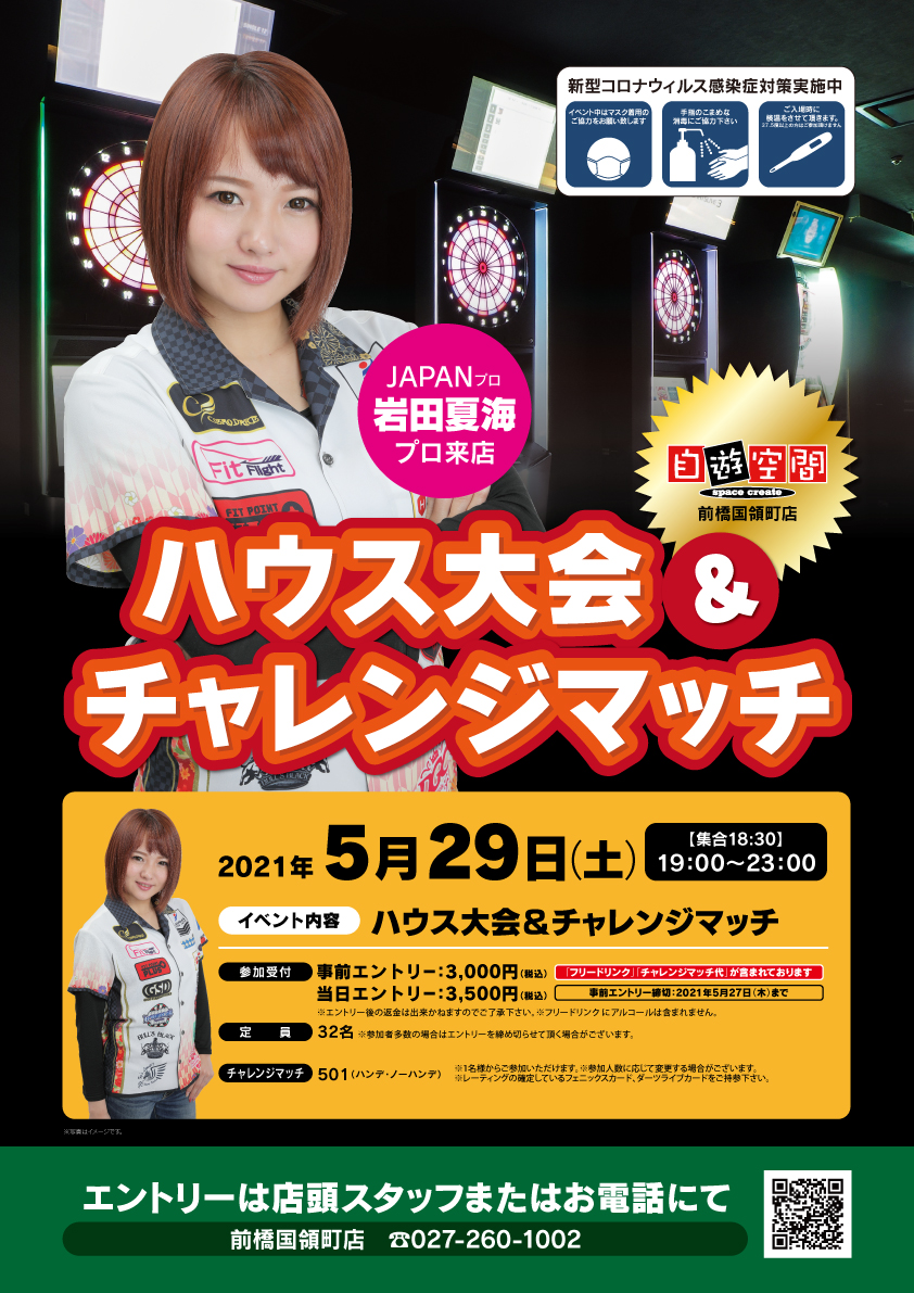 岩田夏海プロとのチャレンジマッチとハウス大会を同時進行します!事前エントリー:3000円(税込)当日エントリー:3500円(税込)ご参加にはチャレンジマッチとハウス大会両方のエントリーが必要となります。定員:32名