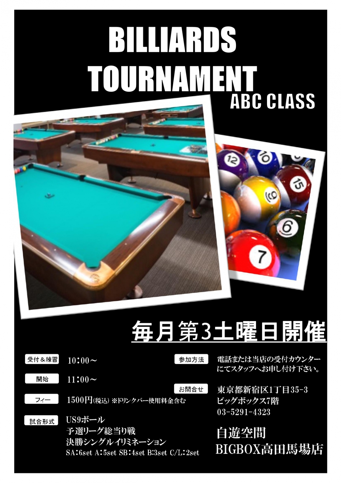 自遊空間BIGBOX高田馬場店マンスリービリヤードトーナメントABC級戦 【毎月開催】