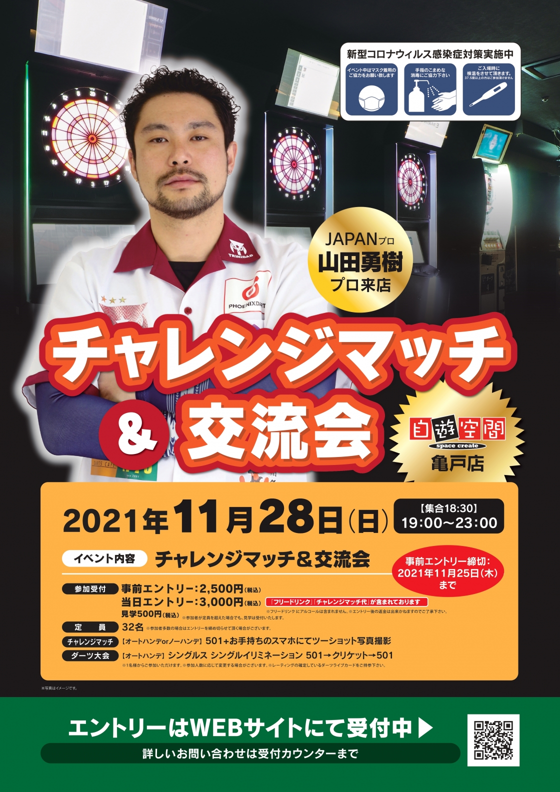 チャレンジマッチ:(オートハンデorノーハンデ)501 +お手持ちのスマホでツーショット撮影