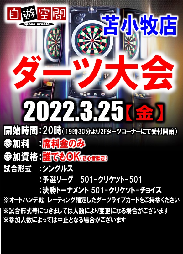 参加者はレーティング確定済みのダーツライブカードをご持参下さい。