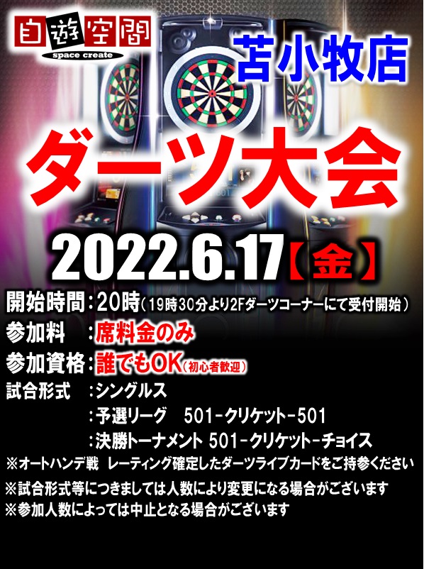 参加者はレーティング確定済みのダーツライブカードをご持参下さい。