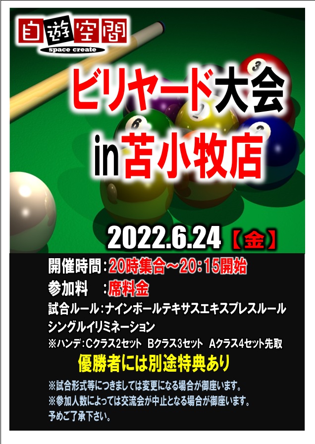 【申込方法】:当日集合時間にビリヤード場へご入場ください。