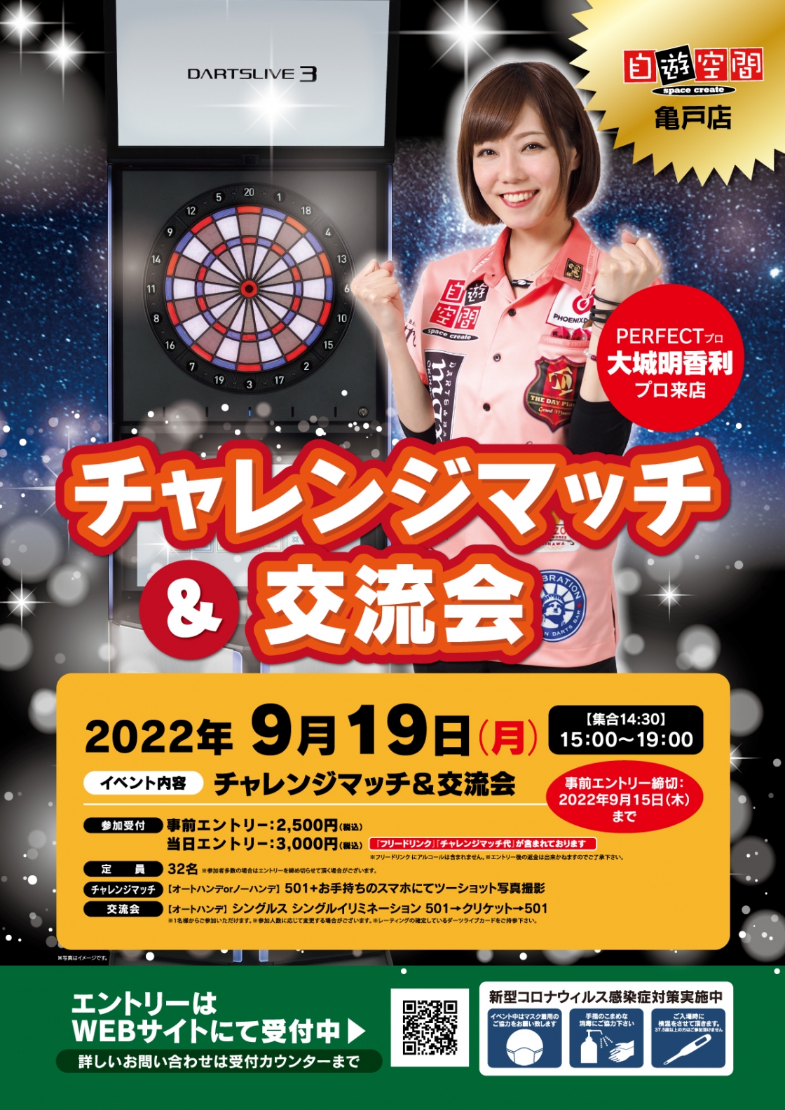 チャレンジマッチ:(オートハンデorノーハンデ)501 +お手持ちのスマホでツーショット撮影