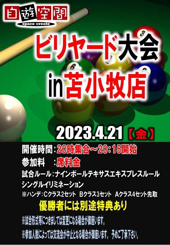 【申込方法】:当日集合時間にビリヤード場へご入場ください。