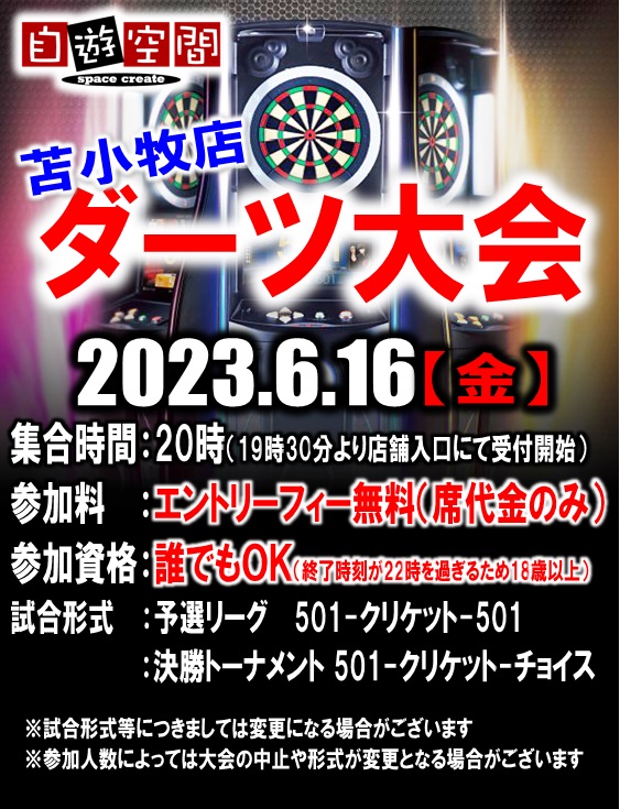 参加者はレーティング確定済みのダーツライブカードをご持参下さい。