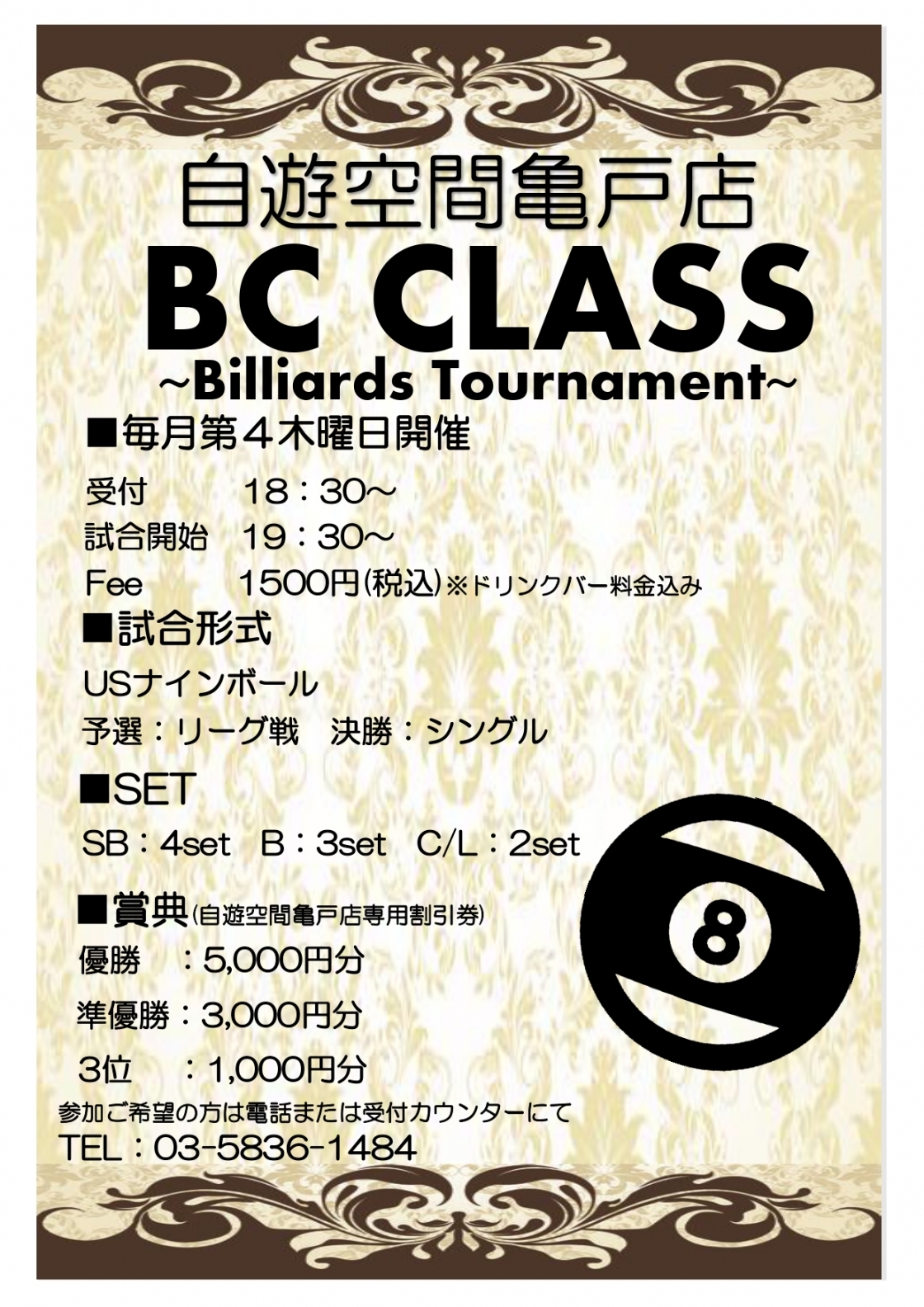 ビリヤードハウストーナメントBCL戦 【毎月開催】