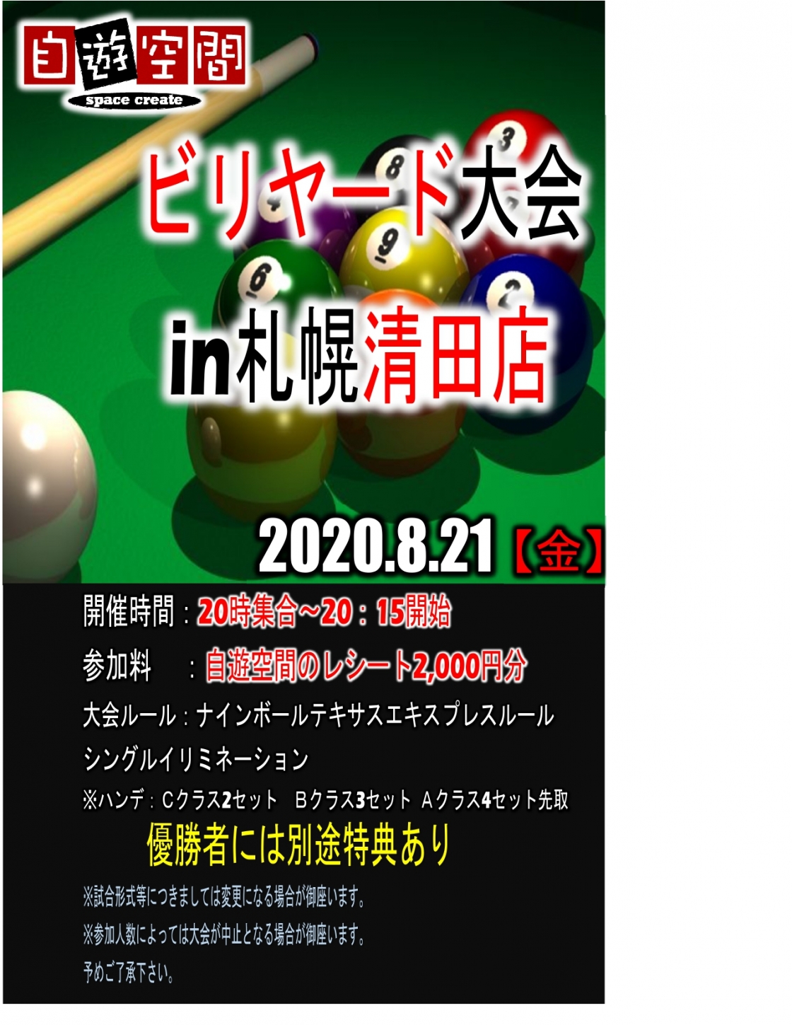 ナインボールテキサスエクスプレスルールセット数ハンデ: A:4 B:3 C:2