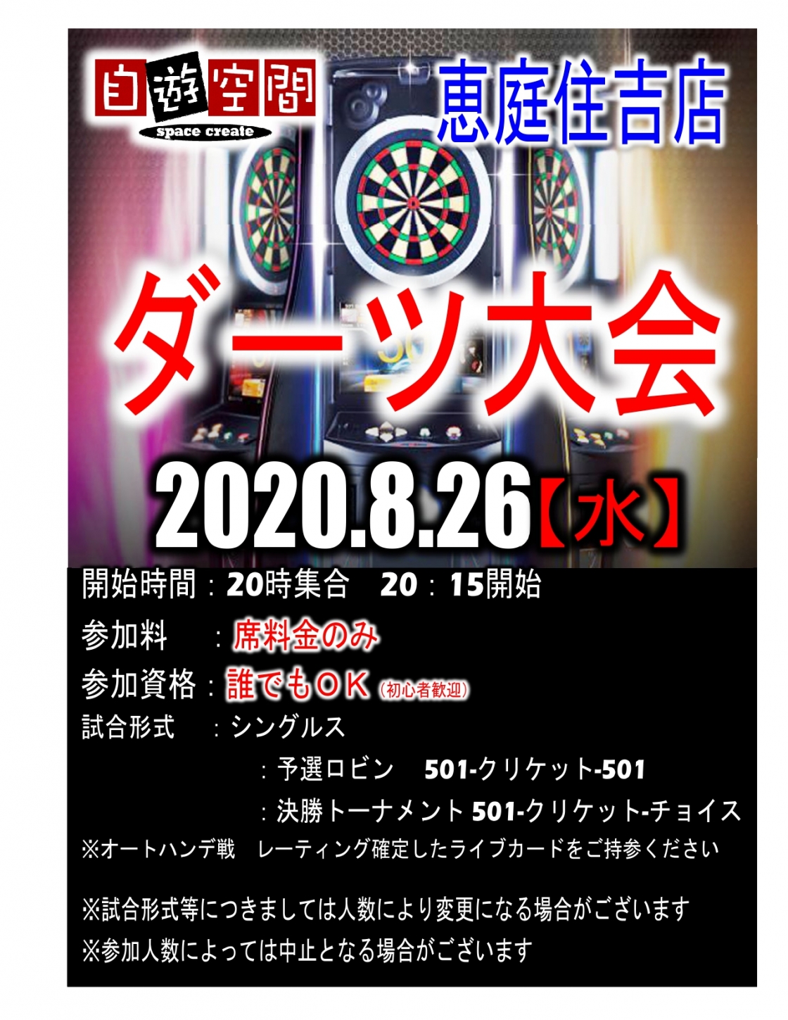 試合はダーツライブを使用致します。