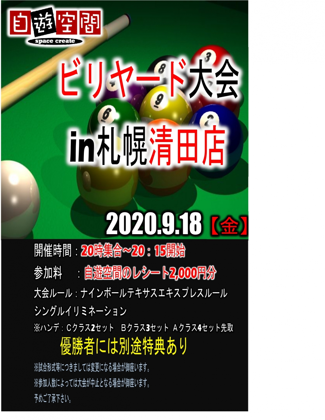 【申込方法】:札幌清田店店頭及び電話もしくは、当日集合時間にお集まり下さい。