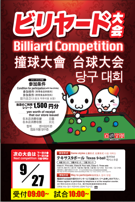 毎月最終日曜日開催(予定)09:00~ エントリー開始10:10 エントリー締切10:15~ 試合開始