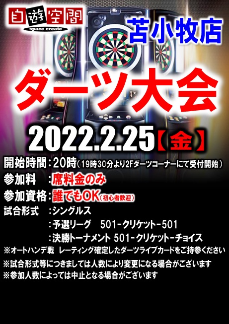 参加者はレーティング確定済みのダーツライブカードをご持参下さい。