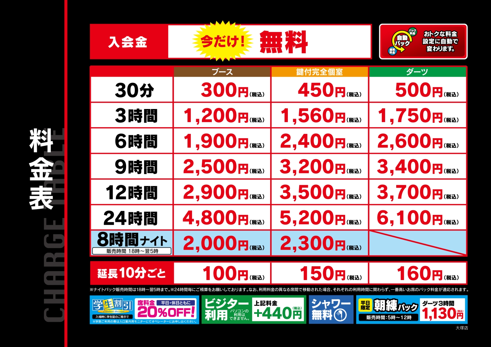 マンガだけや、休憩利用だけ等、パソコンをご利用に