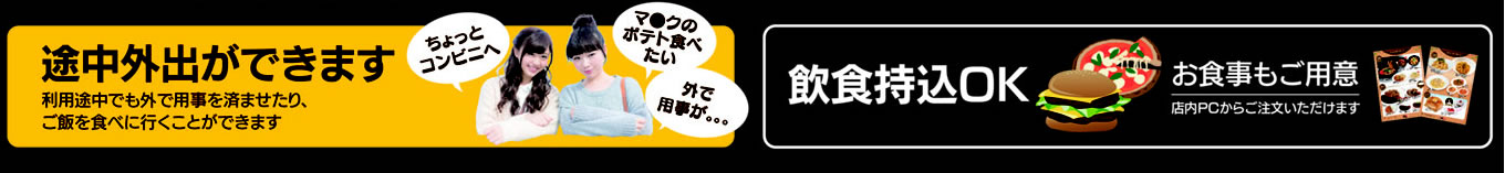 NEXT蒲田西口店では、途中外出・飲食持込がOK!外出して、お食事の持込が出来るよ!